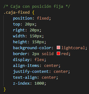a continuacion el codigo HTML y CSS de un componente fixed, y un video de su comportamiento.