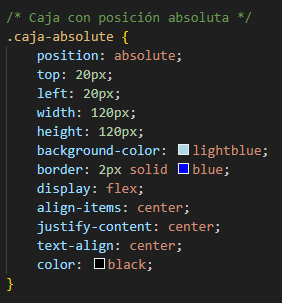 Con position absolute se ajusta el tamaño de la caja al contenido interno