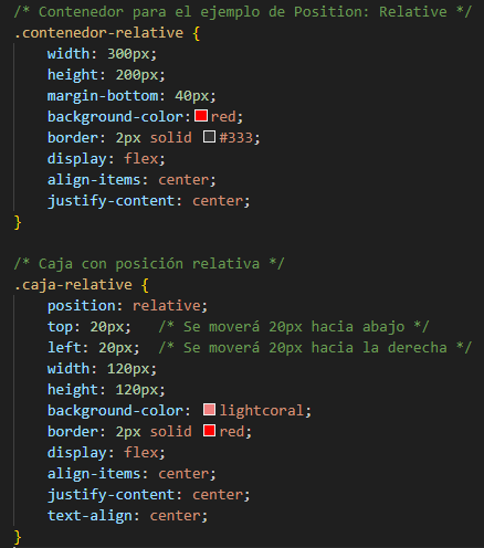 Al darle a un elemento la propiedad position relativa lo que hacemos es que podamos usar las propirdades