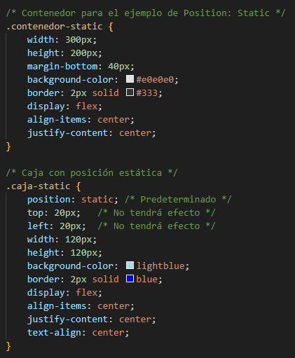 Es el valor por defecto, por lo que se posiciona en el flujo normal del documento
