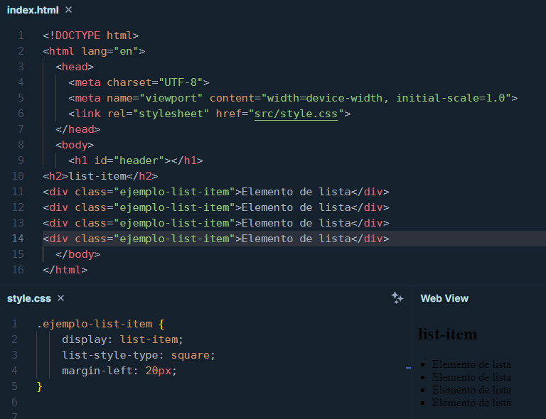 Se comporta como un item lista de HTML < li > < /li > e incluye un marcador o viñeta por defecto