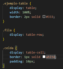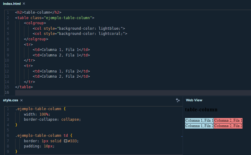 La propiedad table-column está diseñada para ser utilizada junto con la estructura de una tabla real y solo debe