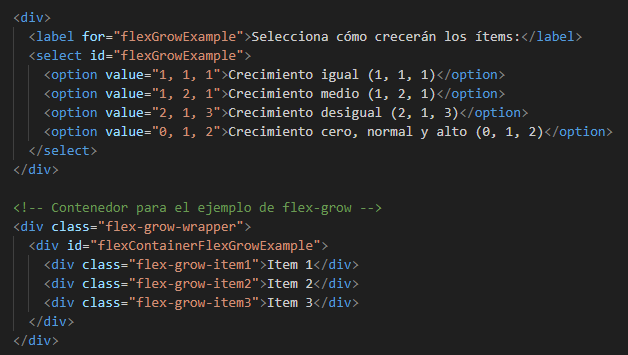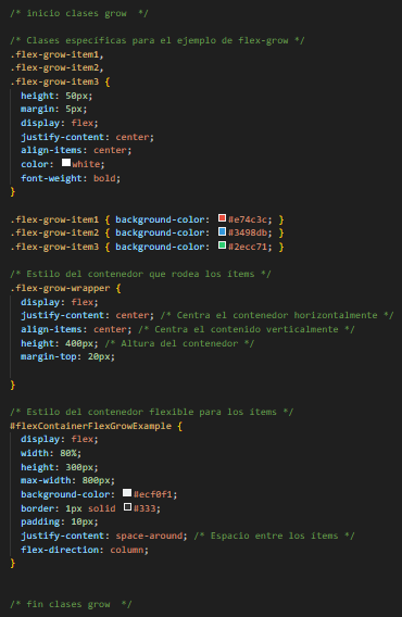 la altura de los elementos. Es decir, cuando los elementos se organizan verticalmente, flex-grow controla cómo