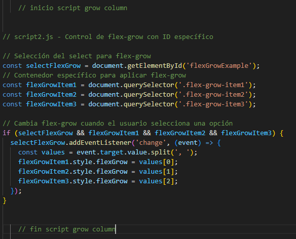 El siguiente es el codigo del ejemplo en HTML, CSS y JavaScript, para flex Shrink en Columnas (column)