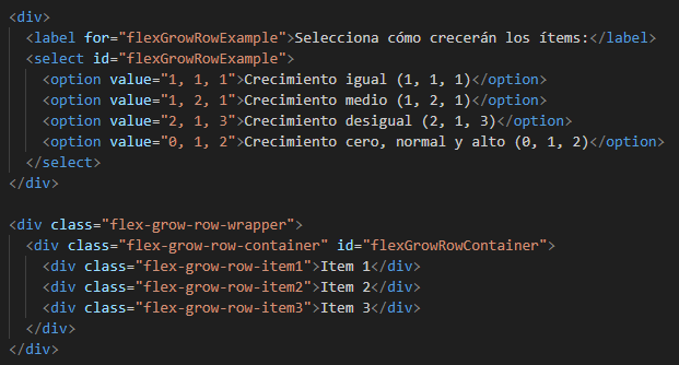 por defecto). Esto significa que, cuando los elementos se colocan en una fila, flex-grow controla cómo esos
