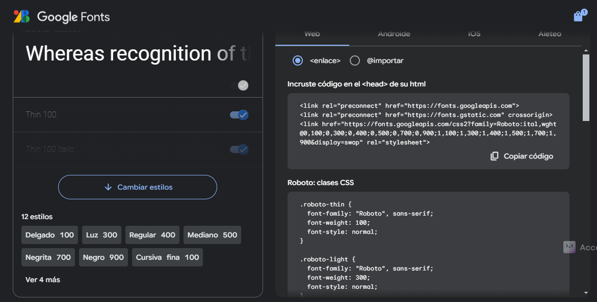 Se pueden importar tipos de fuentes externas, entre las posibilidades se puede hacer desde el HTML