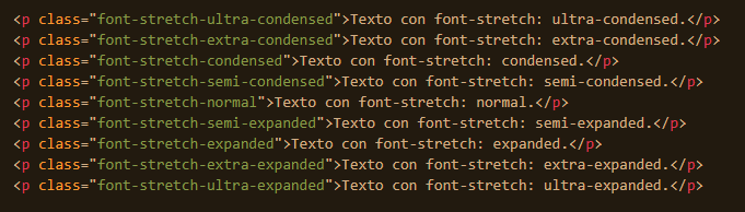 semi-expanded: Selecciona una cara de fuente ligeramente más expandida que normal.