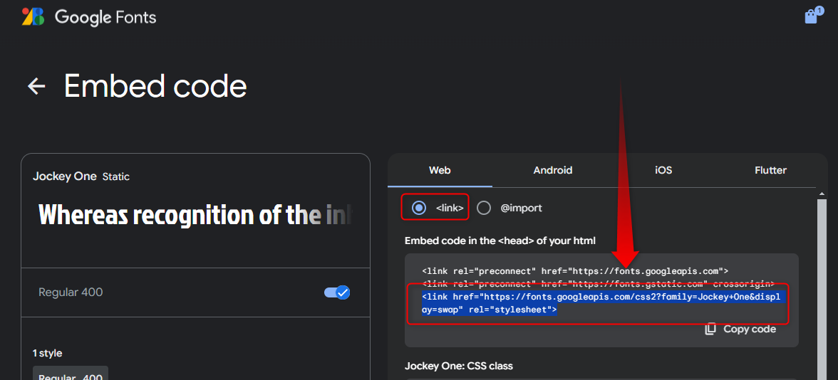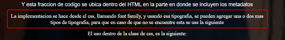 La implementacion se hace desde el css, llamando font family, y usando esa tipografia, se pueden agregar una o dos mas
