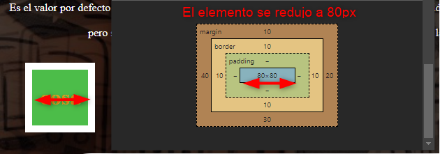 pero si añadimos el border de 10px ahora la medida de nuestro elemento sera la medida
