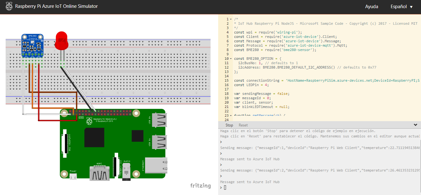 Es claro que se debe cambiar CONNECTION_STRING= por él valor de nuestra cadena de coneccion principal, y así obtendremos los datos del sensor