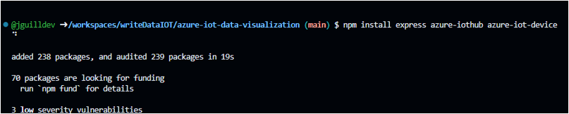 También él Azure-iot-device, que permite la comunicación con él dispositivo simulado, en este caso un raspberryPi, ejecuta desde la terminal: